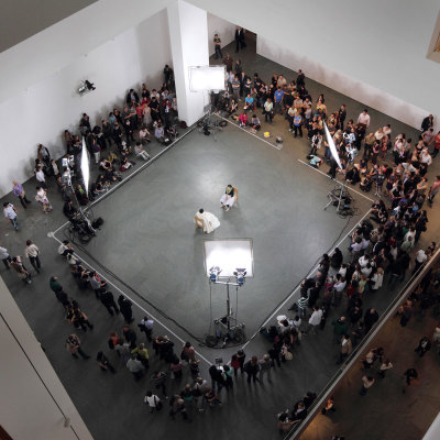 From 1975–88, Abramovic and the German artist Ulay performed together, dealing with relations of duality. Abramovic returned to solo performances in 1989. She has presented her work at major institutions in the US and Europe, including the Stedelijk Van Abbemuseum, Eindhoven,1985; Centre Georges Pompidou, Paris, 1990; Neue National Galerie, Berlin, 1993, and the Museum of Modern Art, Oxford, 1995. She has also participated in many large-scale international exhibitions including the Venice Biennale (1976 and 1997) and Documenta VI, VII and IX, Kassel (1977, 1982 and 1992). Recent performances include The House With The Ocean View at Sean Kelly Gallery, New York in 2002, and the Performance 7 Easy Pieces at Guggenheim Museum, New York in 2005.
